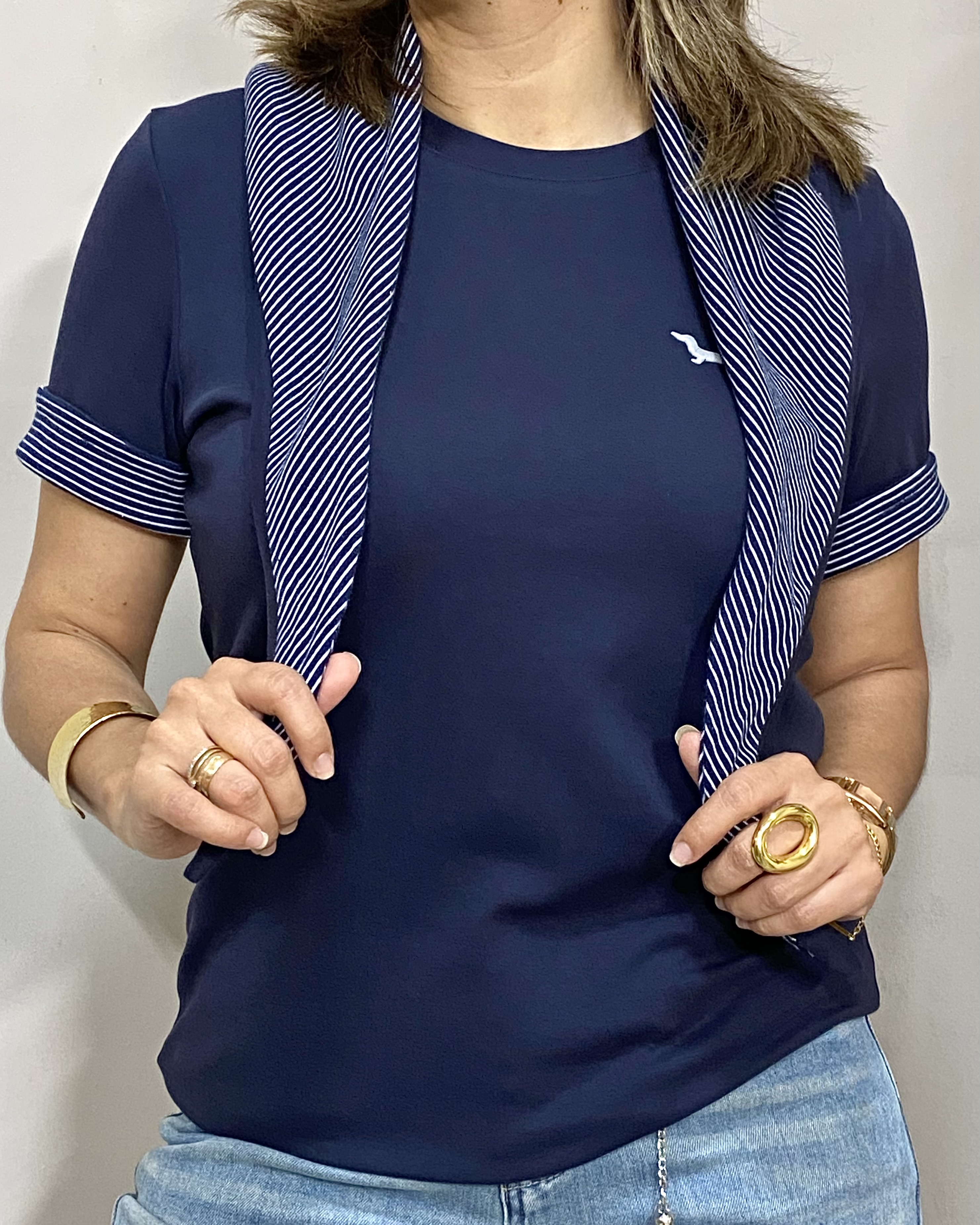 Blusa casual con detalle bicolor en manga, incluye pañuelo