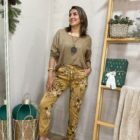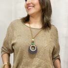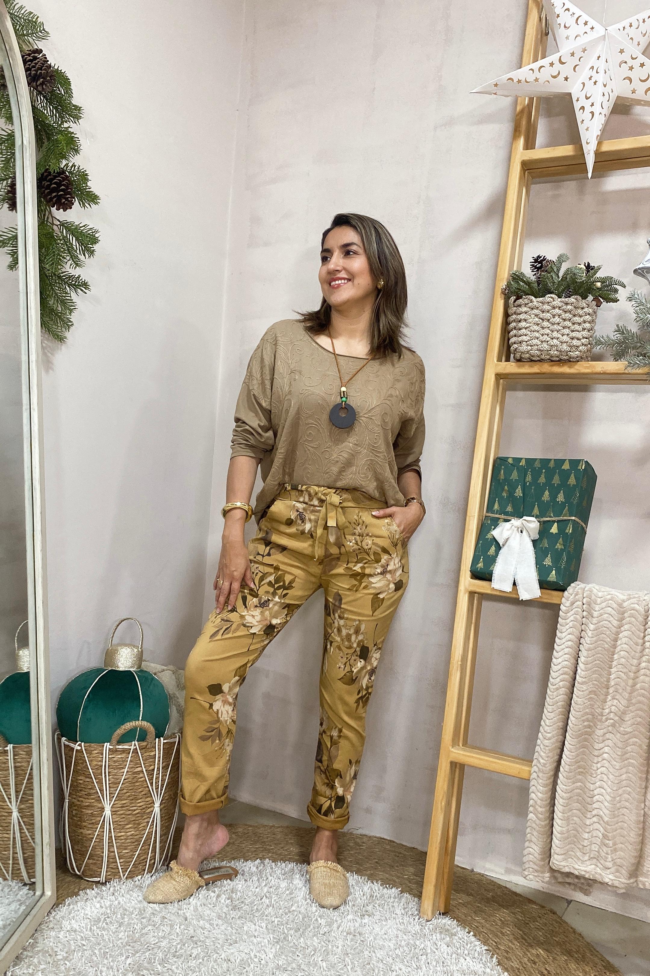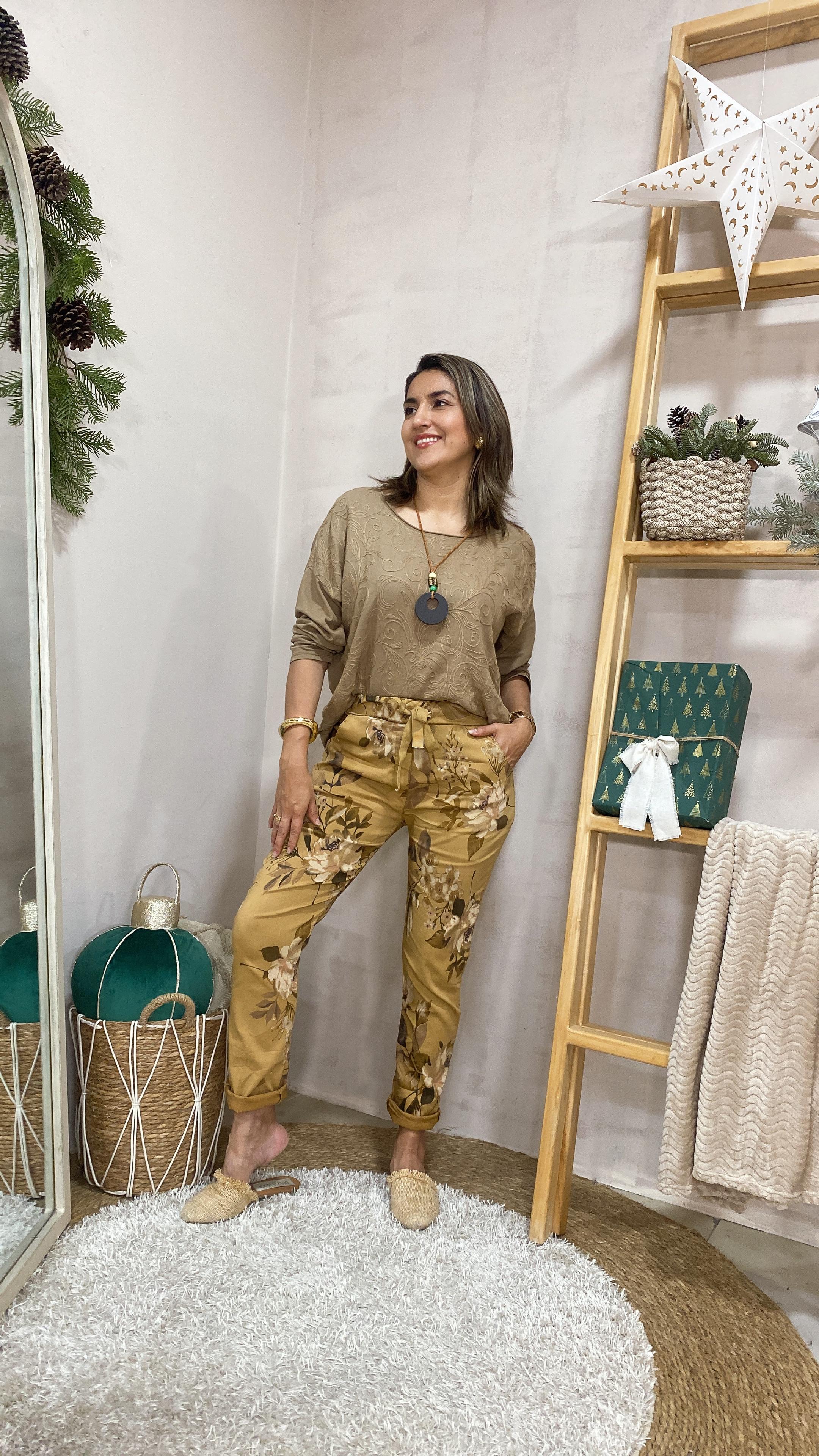 Blusa de manga larga confeccionada en tejido suave y cómodo que presenta un delicado bordado floral, lo que le da un toque sofisticado y femenino. Su diseño atemporal es perfecto para combinar con pantalones o faldas, y su estilo relajado es ideal para un look de oficina o un día casual. Además, viene acompañada de un elegante colgante con detalles en madera y piedras.