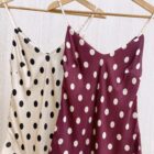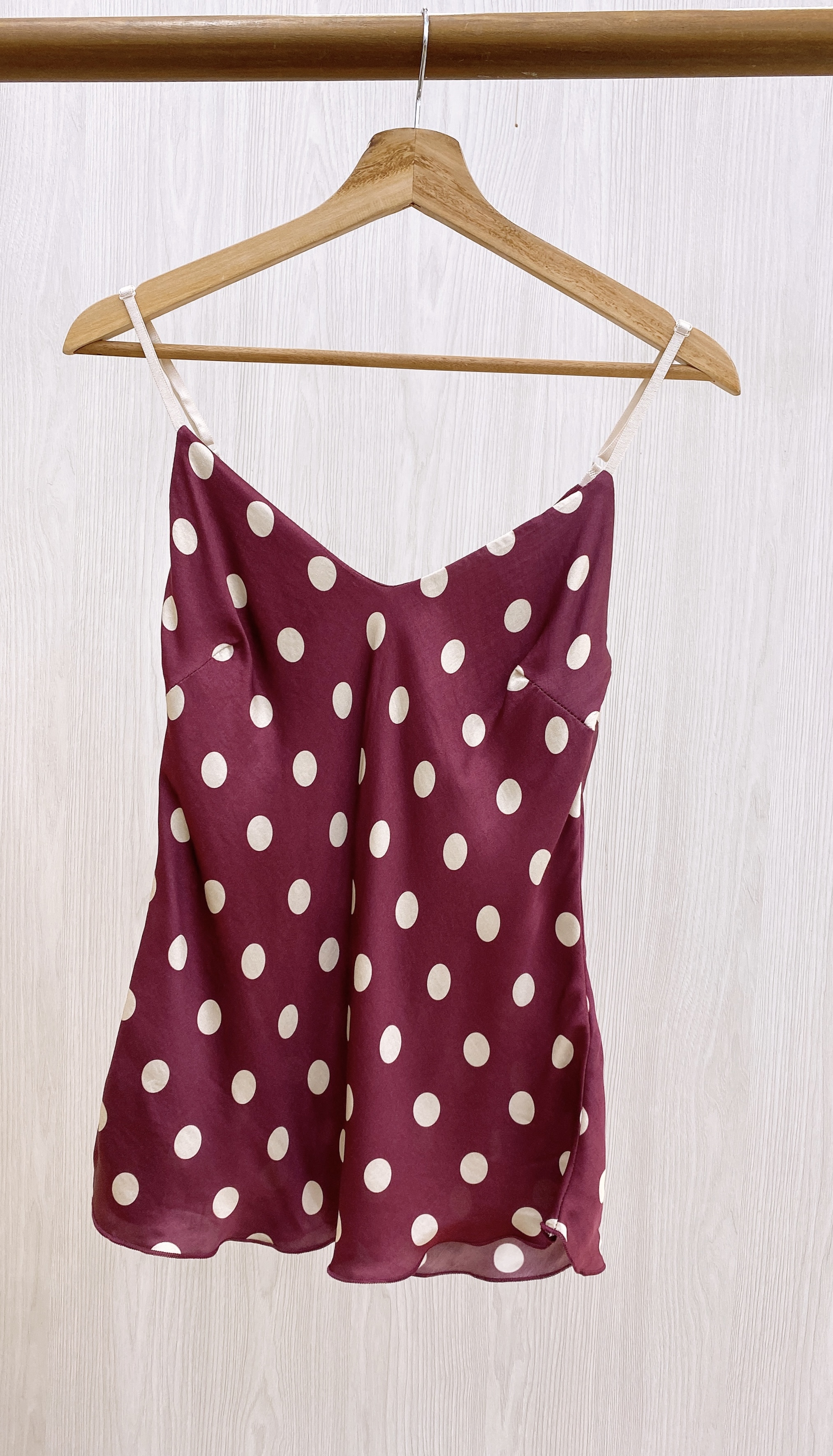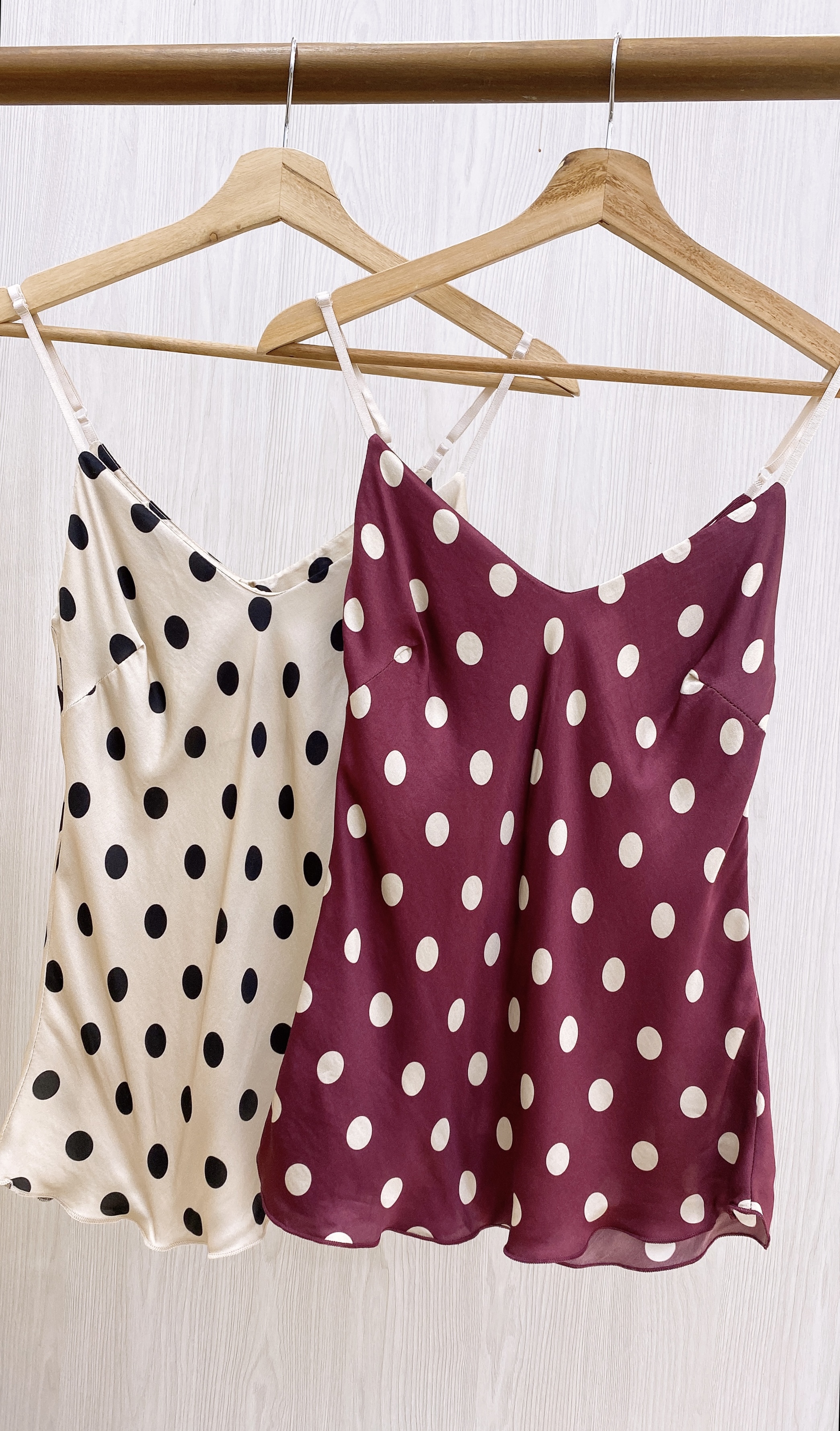 Blusa básica de tiras regulables, satinada con lunares en contraste.