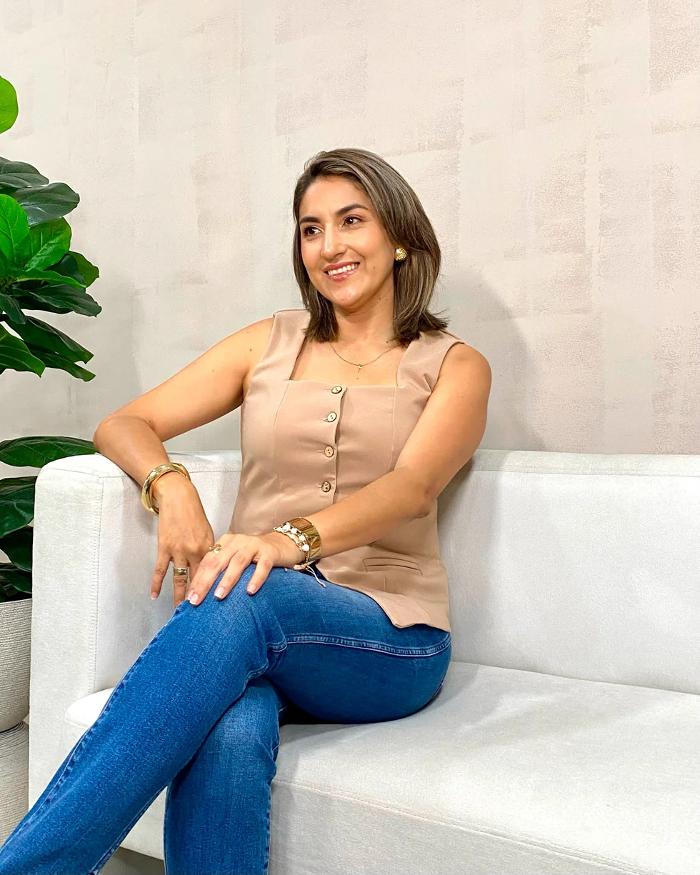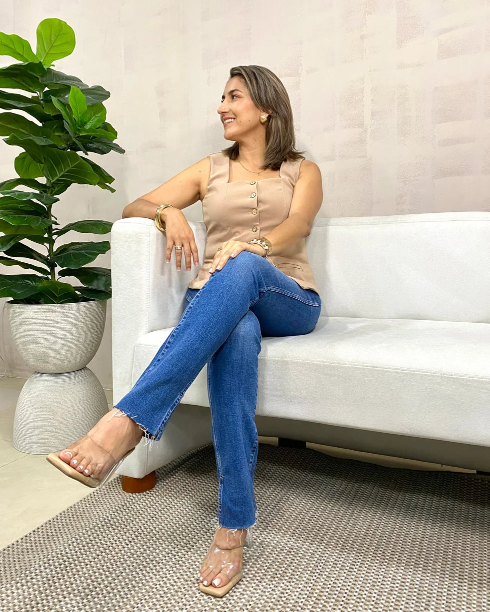 Este modelo de blusa estilo chaleco con diseño entallado, presenta un escote cuadrado además de botones frontales de madera. En su diseño también presenta bolsillos decorativos que le dan un toque chic a tu outfit. Es una prenda atemporal perfecta para combinar tanto en outfits casuales como en looks elegantes.