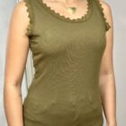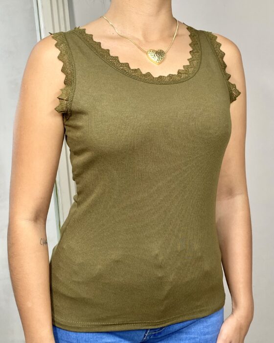 Esta es una prenda básica que destaca por sus detalles en encaje en el escote y hombros. Esta confeccionada en un tejido acanalado suave y elástico que se ajusta perfectamente al cuerpo, brindando una silueta favorecedora. Su diseño la convierte en una opción ideal para combinar con jeans, faldas o chaquetas, tanto en outfits casuales como en looks más elegantes.