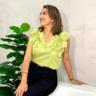 Blusa manga sisa escote en V con flores sobrepuestas en hombro