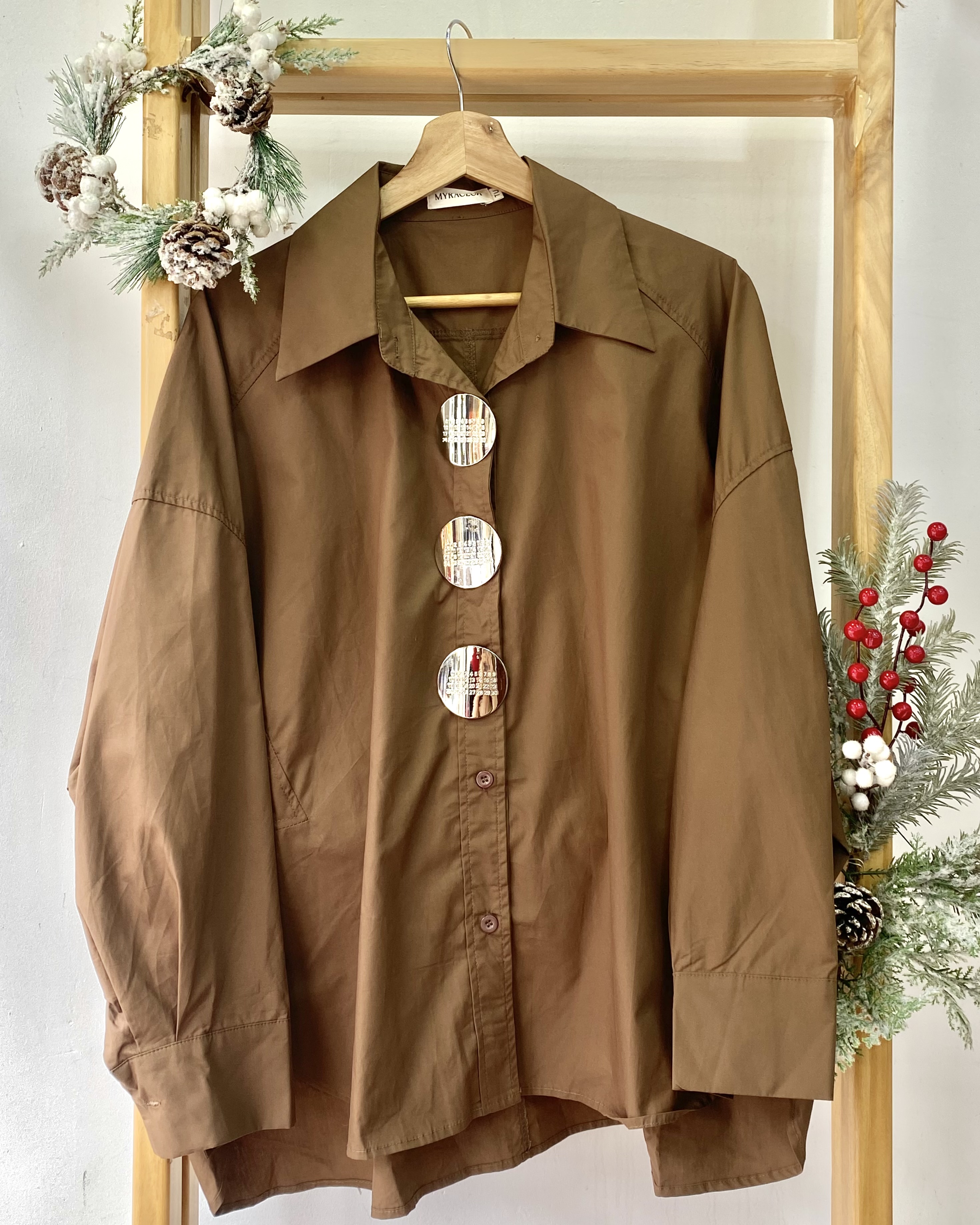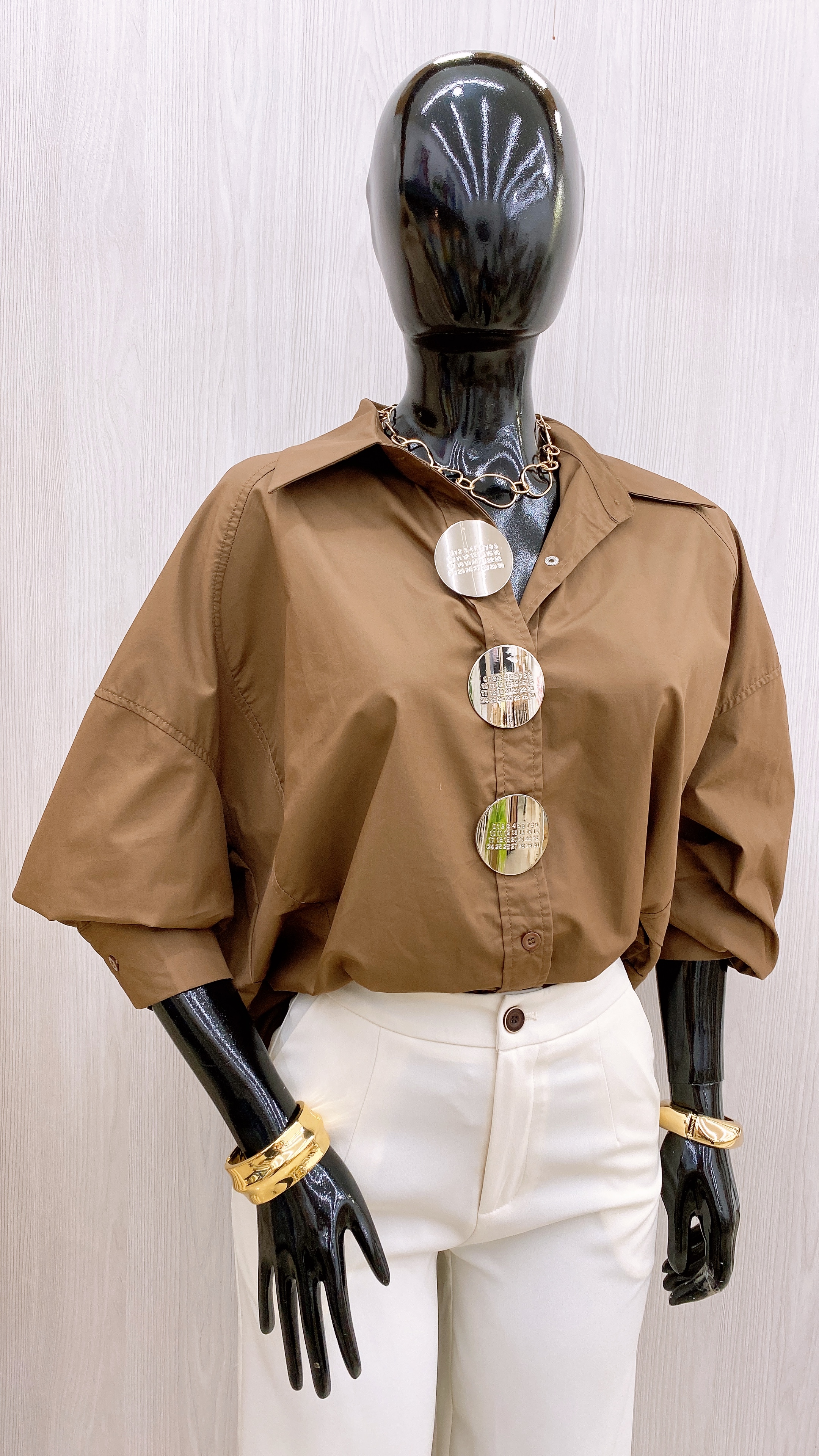 Blusa Oversize con maxi botones plateados
