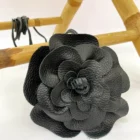Cinturón negro con flor en relieve de piel sintética, un accesorio femenino y elegante para resaltar la cintura.