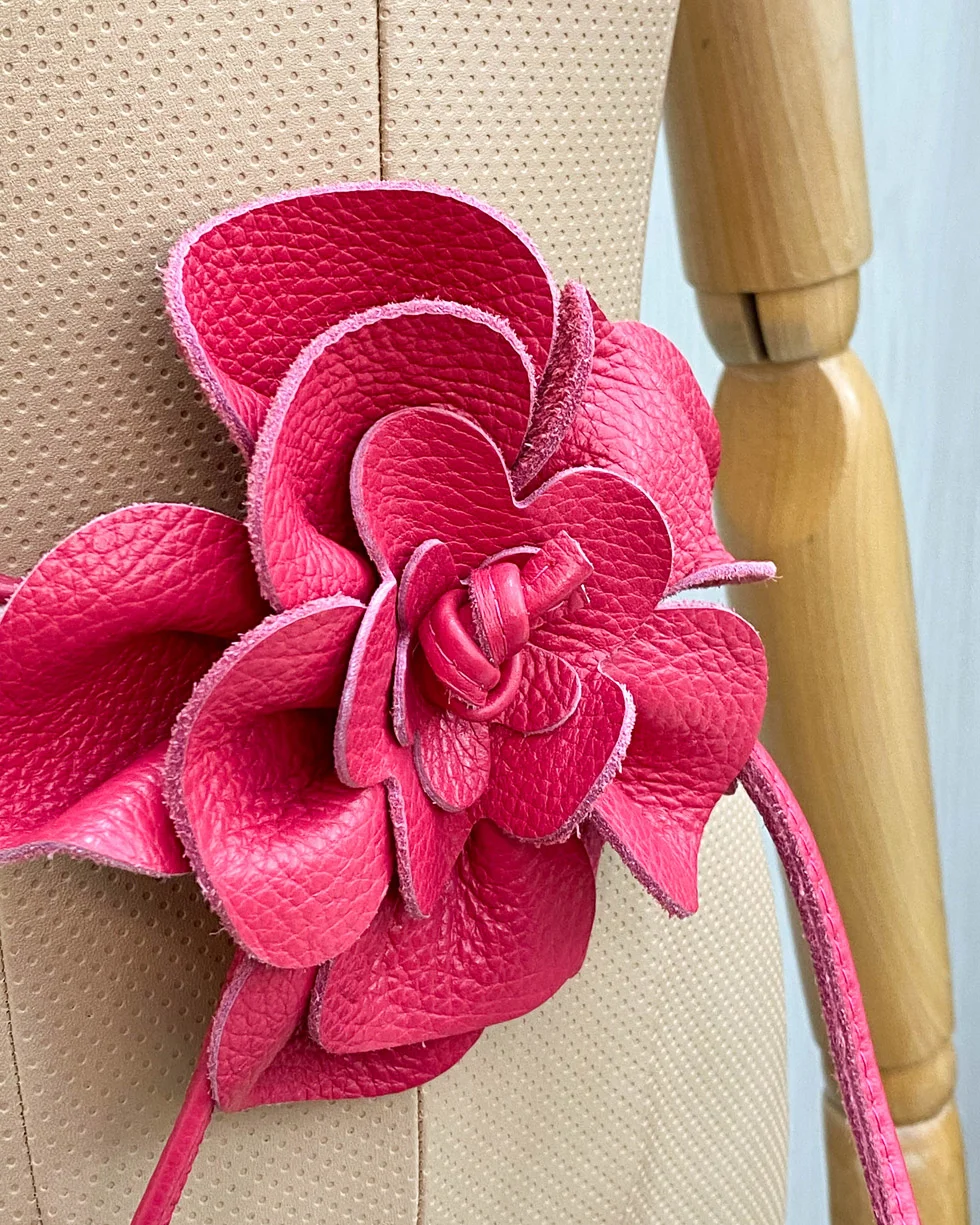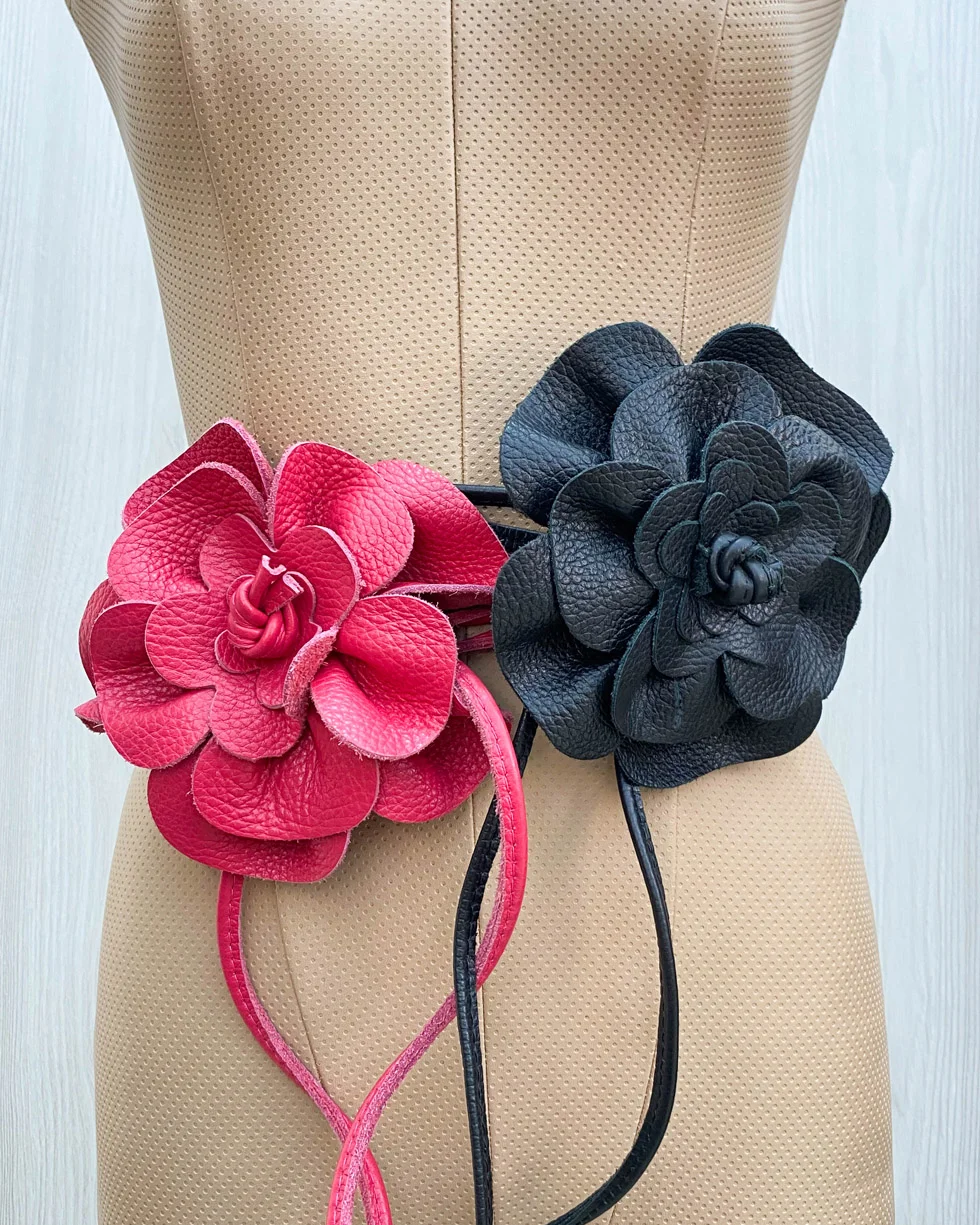 Este cinturón no solo define la silueta, sino que también transforma un atuendo básico en un conjunto chic. Su diseño único, con una gran flor de pétalos superpuestos, aporta volumen y estilo, convirtiéndolo en un accesorio llamativo y sofisticado. Perfecto para usar con vestidos, blusas largas, faldas o incluso chaquetas.