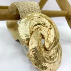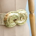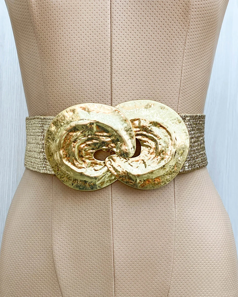 Destaca tu look con este cinturón beige con hebilla dorada, ideal para quienes buscan elegancia y originalidad. Su hebilla metálica, con acabado martillado y formas orgánicas, aporta un toque artístico y sofisticado. Este cinturón es el complemento ideal para vestidos, blusas oversize o pantalones de tiro alto, tanto en eventos formales como en looks casual chic. Accesorio moderno, llamativo y funcional.