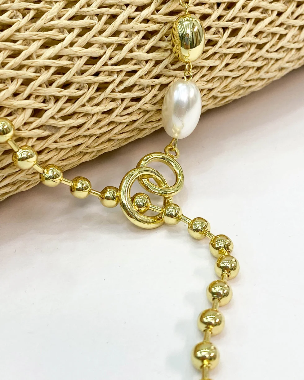 Este collar realza cualquier atuendo con un aire refinado y glamuroso. Las perlas son símbolo de pureza y elegancia atemporal que se fusionan con el dorado brillante para crear un accesorio que nunca pasa de moda. Lo podemos usar perfecto para ocasiones especiales como en eventos importantes.
