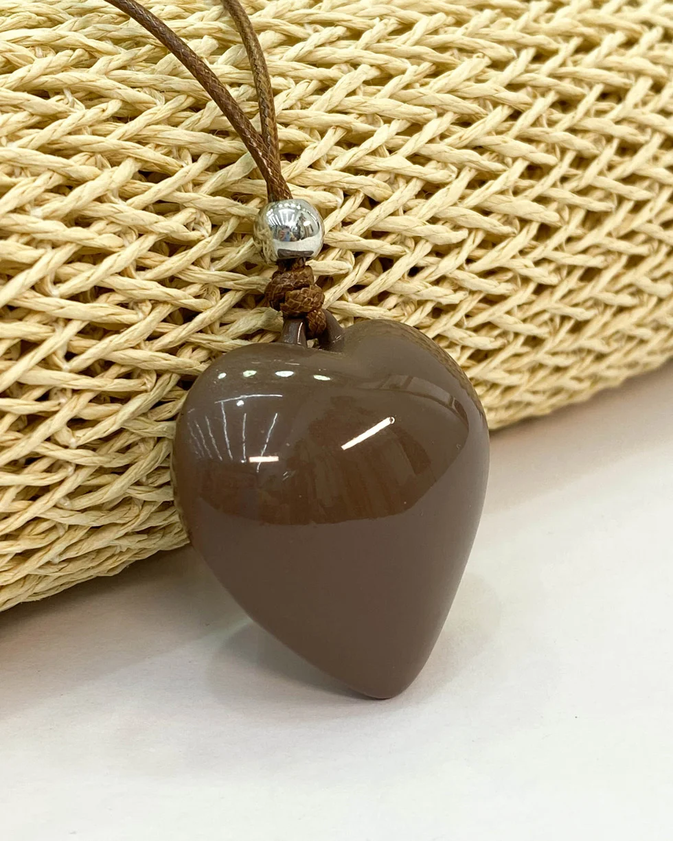 Collar de cordón con dije en forma de corazón de cerámica esmaltada, un accesorio moderno y versátil.