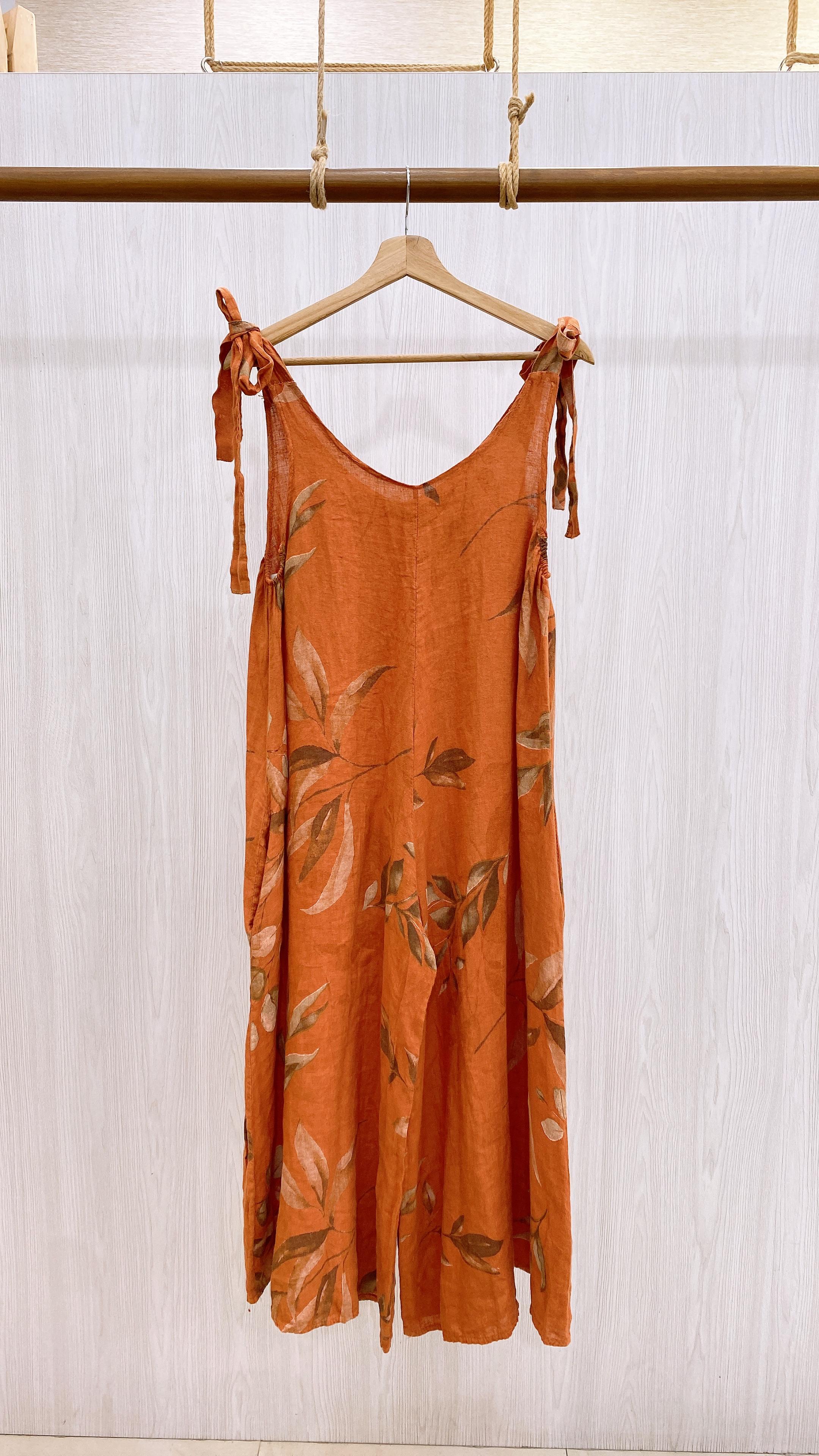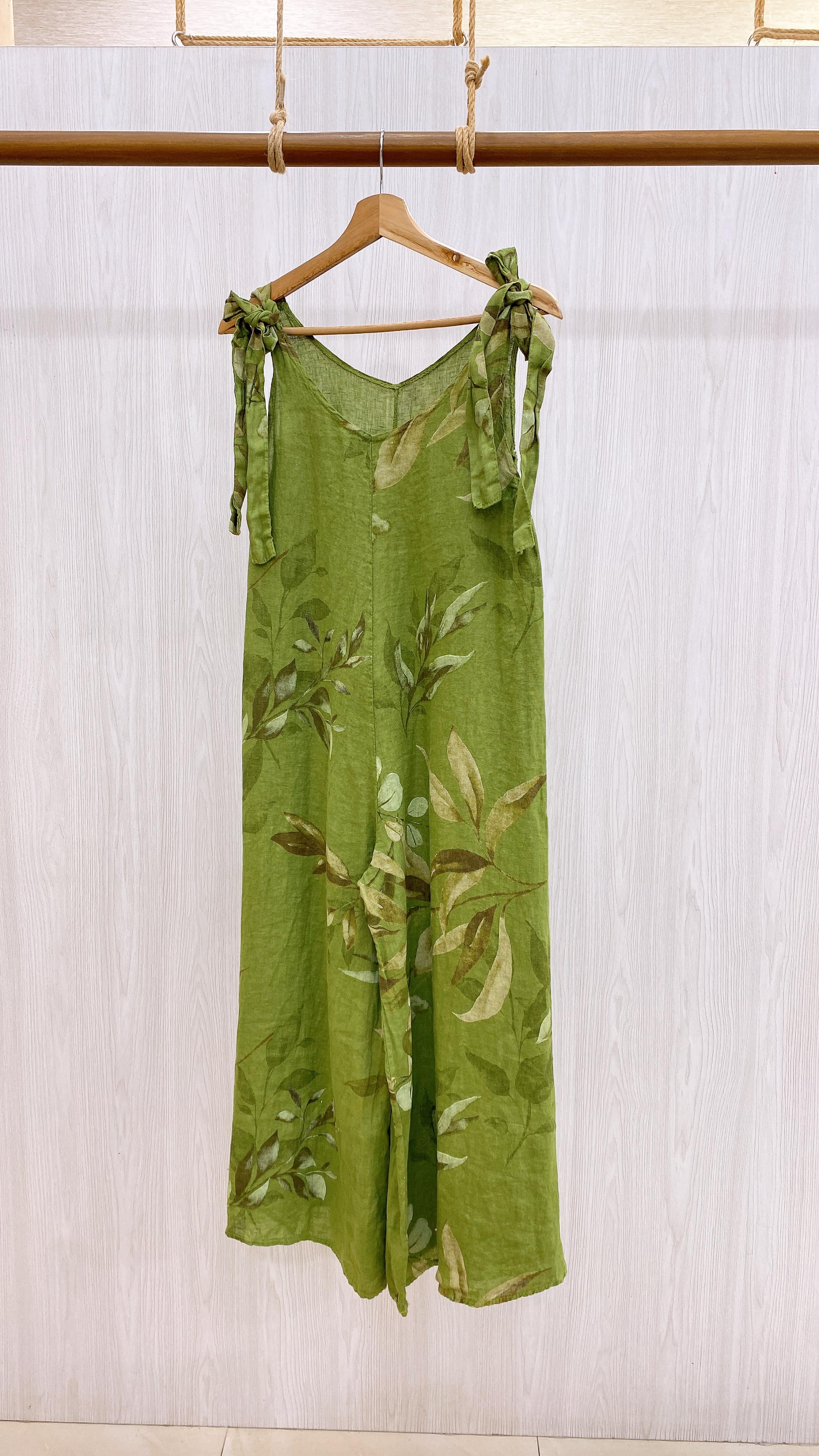 Enterizo corte Culotte con amarre en hombreras y presenta un delicado estampado sobre toda la prenda.