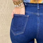 Este es un jean azul oscuro con diseño de tiro alto que realza la figura, mientras que la bota doblada con detalle en pedrería le aporta un toque original. Su confección es en denim con stretch de alta calidad. Este jean es perfecto para combinar con blusas, camisas o tops y crear outfits casuales así como looks más refinados.