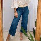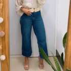 Jean culotte con bolsillos posteriores funcionales y detalle de doblez ancho en la basta.