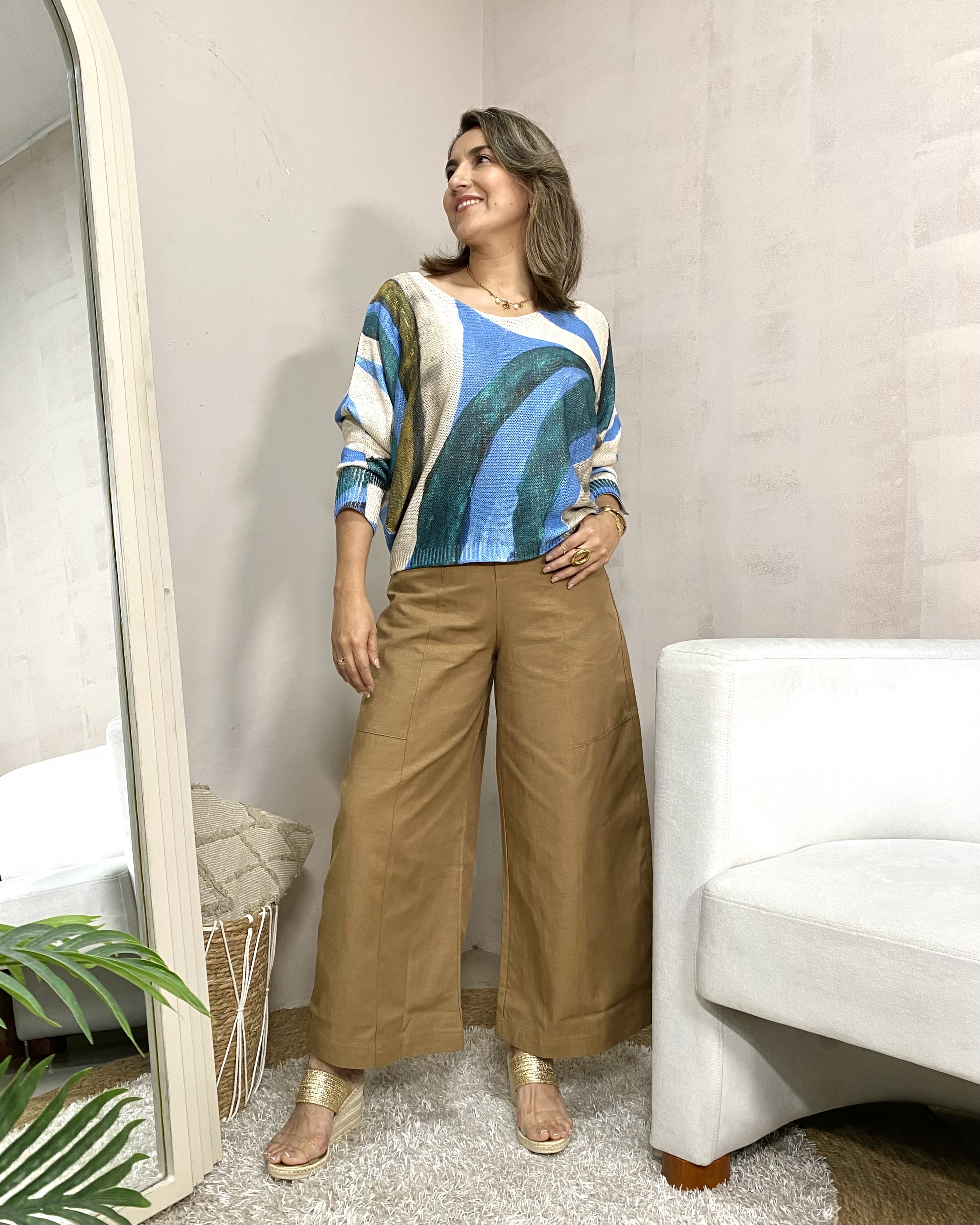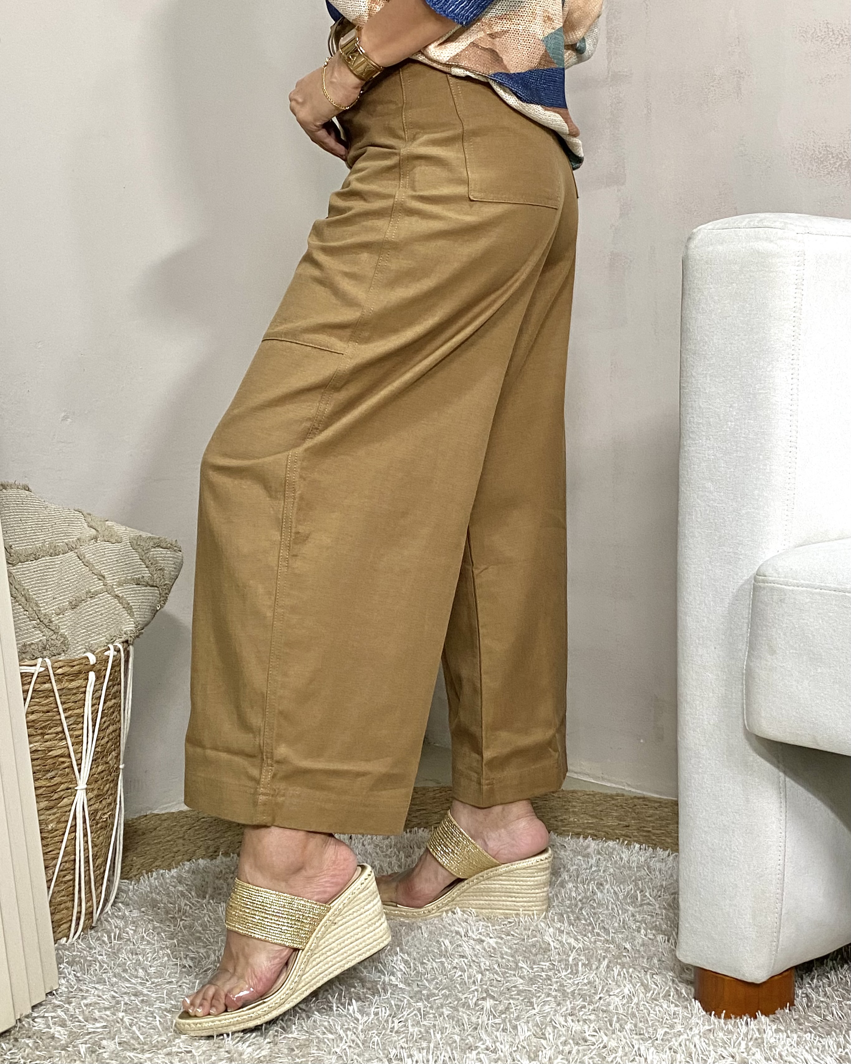 Este palazzo esta confeccionado en una tela fresca y de excelente caída, en un tono camel, cuenta con tiro alto y corte amplio que estiliza la figura. Este modelo es una opción ideal para crear looks tanto casuales como elegantes. Además es perfecto para combinar con blusas, tops o camisas.