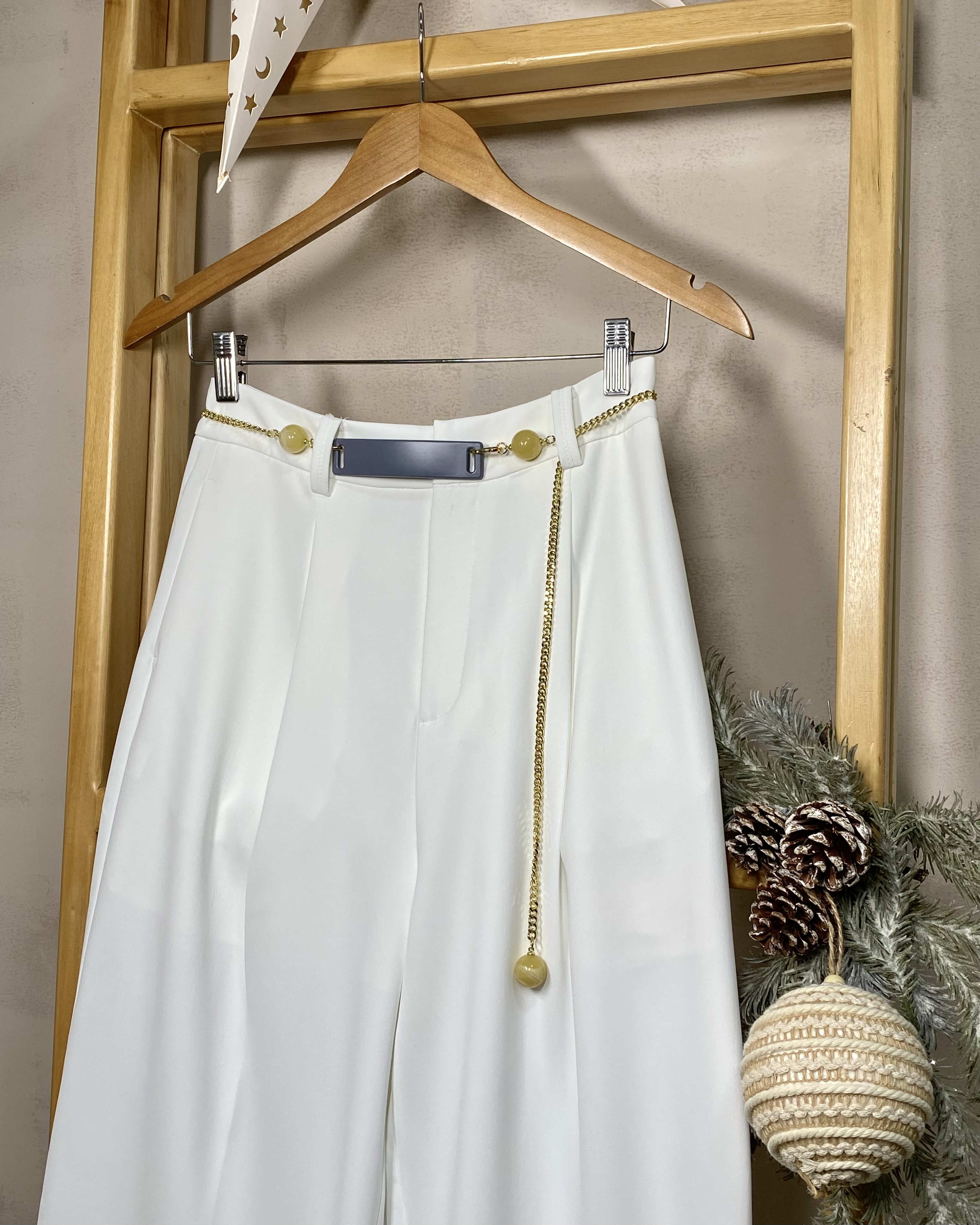 Este pantalón de corte recto tiene un diseño con pretina clásica y pinzas sutiles que estilizan la silueta, mientras que la caída fluida del tejido garantiza movimiento y frescura. Es perfecto para looks formales, de oficina o combinaciones mas casuales. Lo podemos combinar con accesorios dorados para elevar nuestro look.