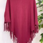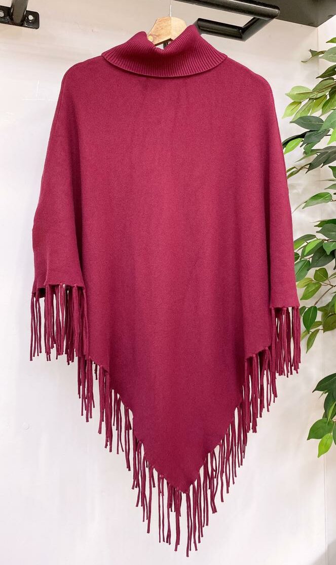 Poncho elegante con cuello tortuga terminación en punta con flecos.