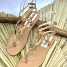 Estas sandalias planas tiene un diseño con tiras finas en tono camel que se ajustan al tobillo y su suela aunque es plana nos ofrece gran confort en los pies. Además son perfectas para combinar con vestidos, shorts o faldas en looks casuales o veraniegos. Este estilo de sandalias es ideal para mantener un estilo chic y femenino.
