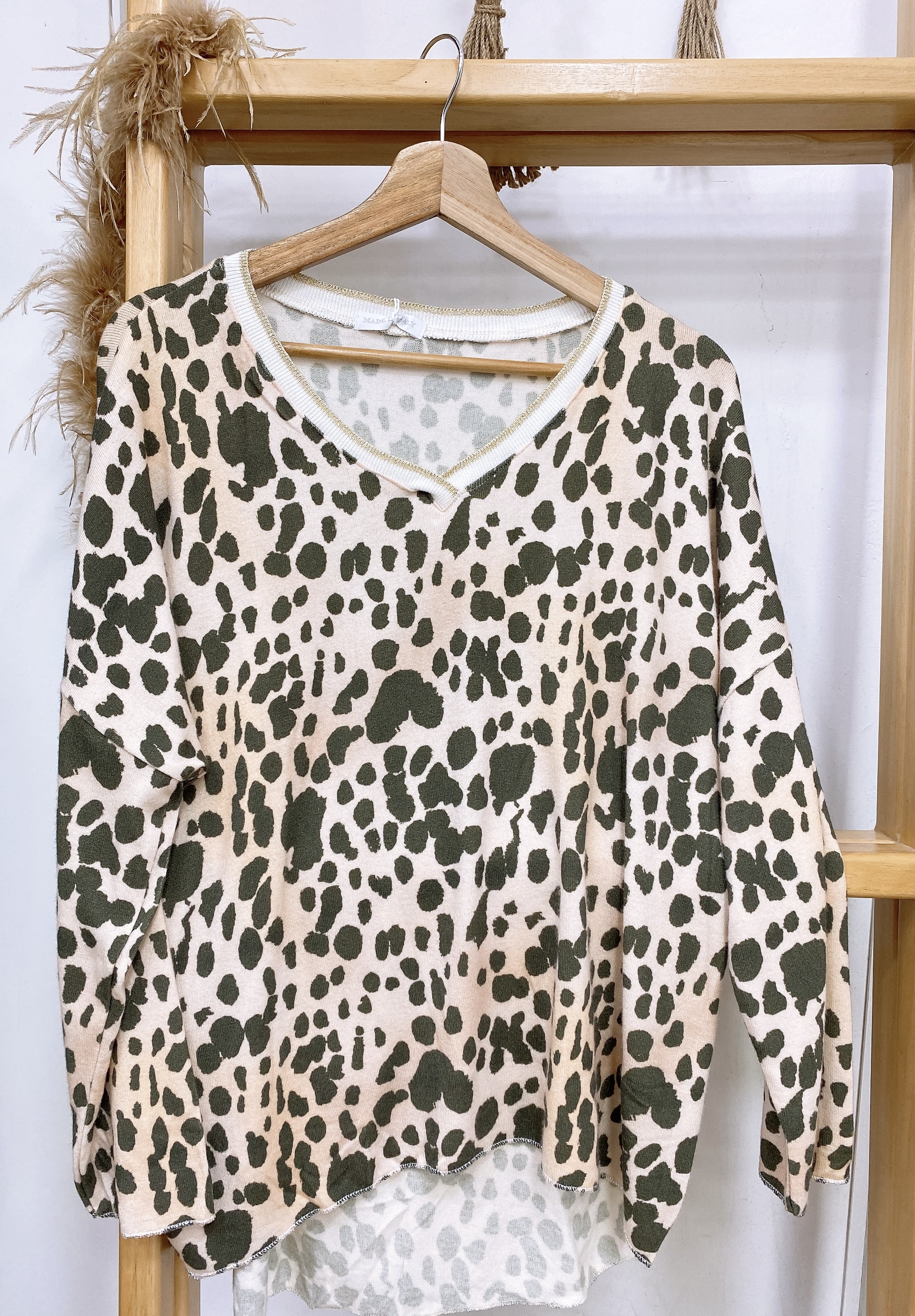- Saquito cuello en V con estampado animal print