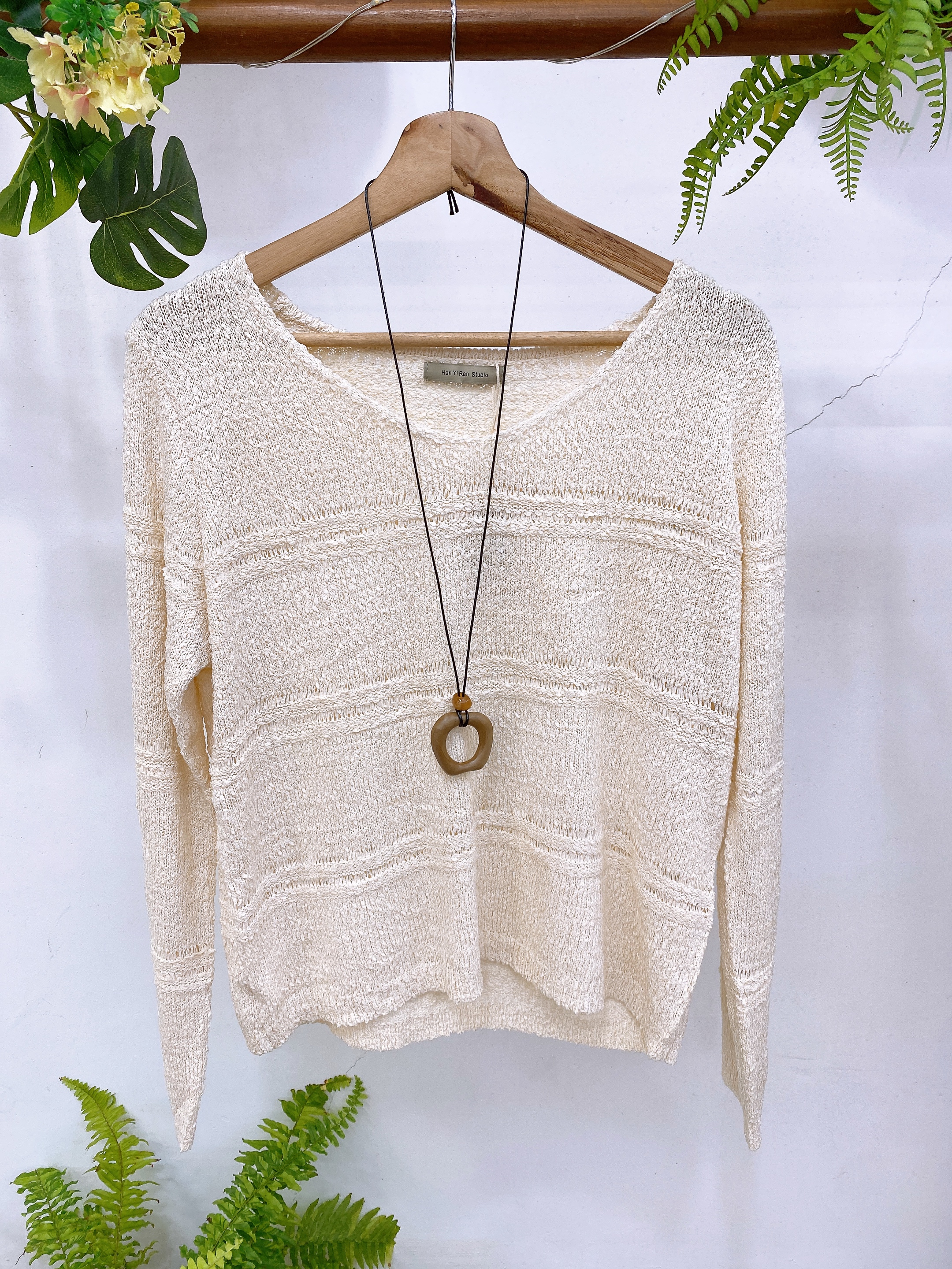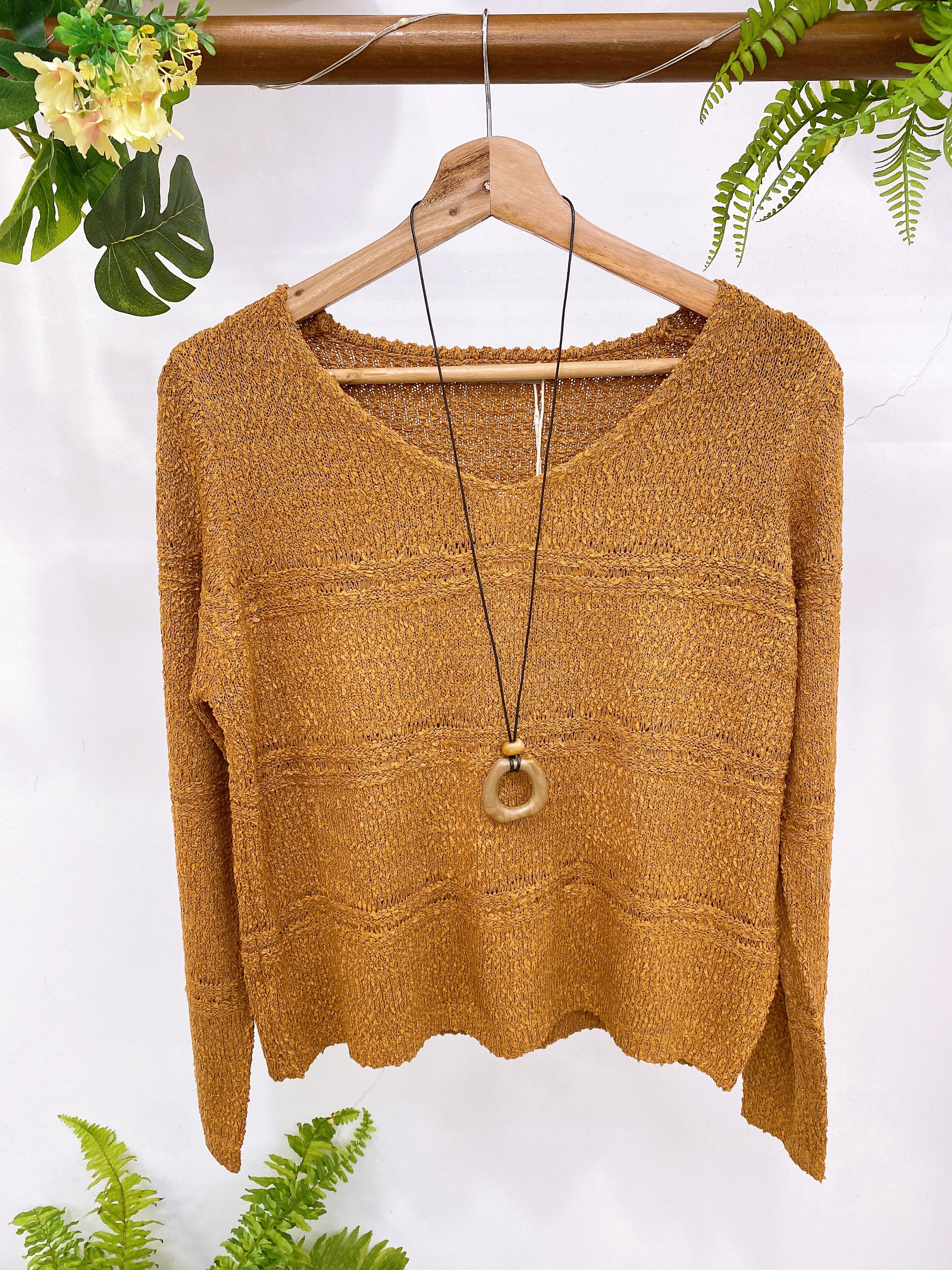 Sweater cuello en V incluye collar