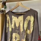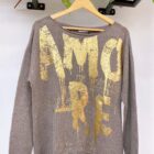 Sweater cuello redondo con letras estampadas en foil dorado en la parte frontal.