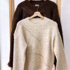 Sweater tejido cuello redondo con bordado hojas