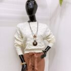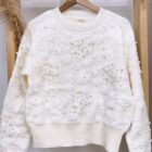 Sweater tejido cuello redondo con detalle de perlas
