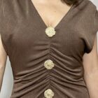 Vestido con botones dorados y encarrujado en frente - café con dorado, S/M+Pulsera Dorada de mujer